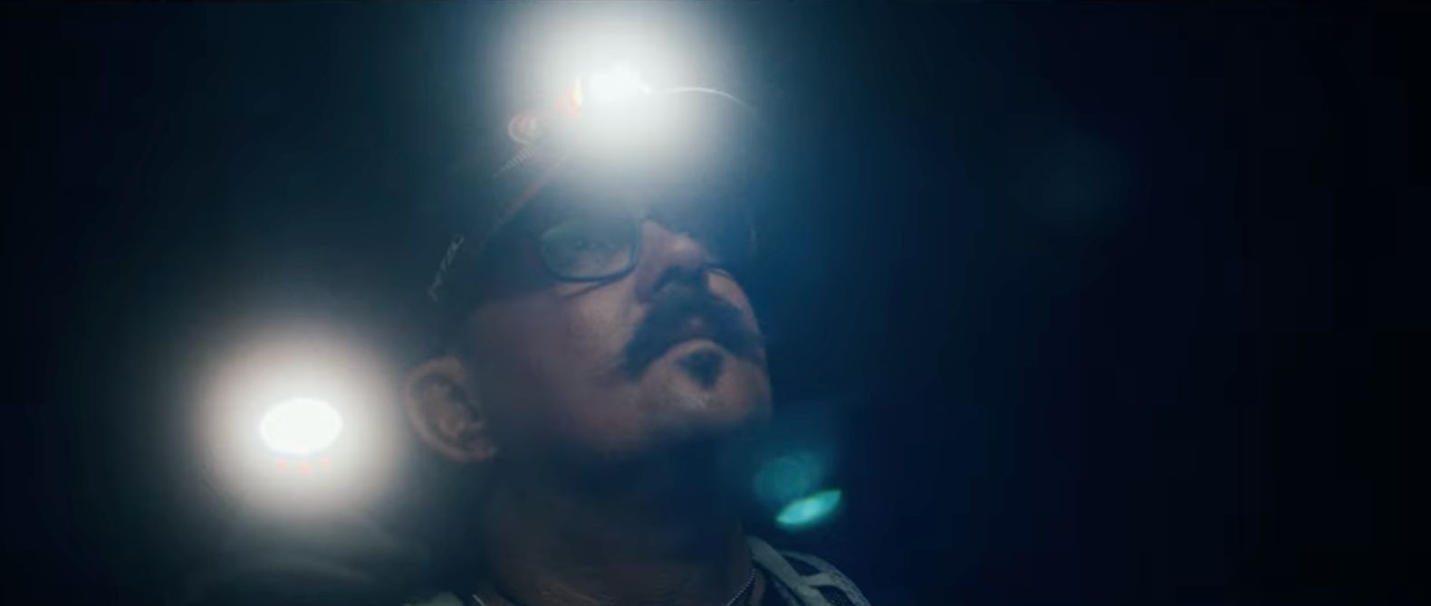 Ruben Woodin Dechamp illuminates these dark, deep spaces breathtakingly. The gloomy atmosphere emerges from dazzling flashlights, headlamps sweeping the darkness, and the texture of damp and moldy walls, eroded by time. This cinematographer perfectly masters the play between real and staged, and through his slow, hypnotic movements, he takes us traveling into the unknown while tickling our curiosity.