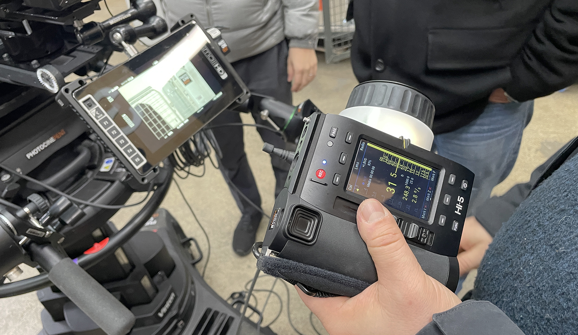 Similarly, and for optimal control, it is possible to point the camera using an Arri Hi-5 remote, wired via an RIA-1 and an LCUB2. Aperture can be controlled via the Hi-5 remote or via an RCP connected to the camera (compatible with Sony/Arri/Panasonic).