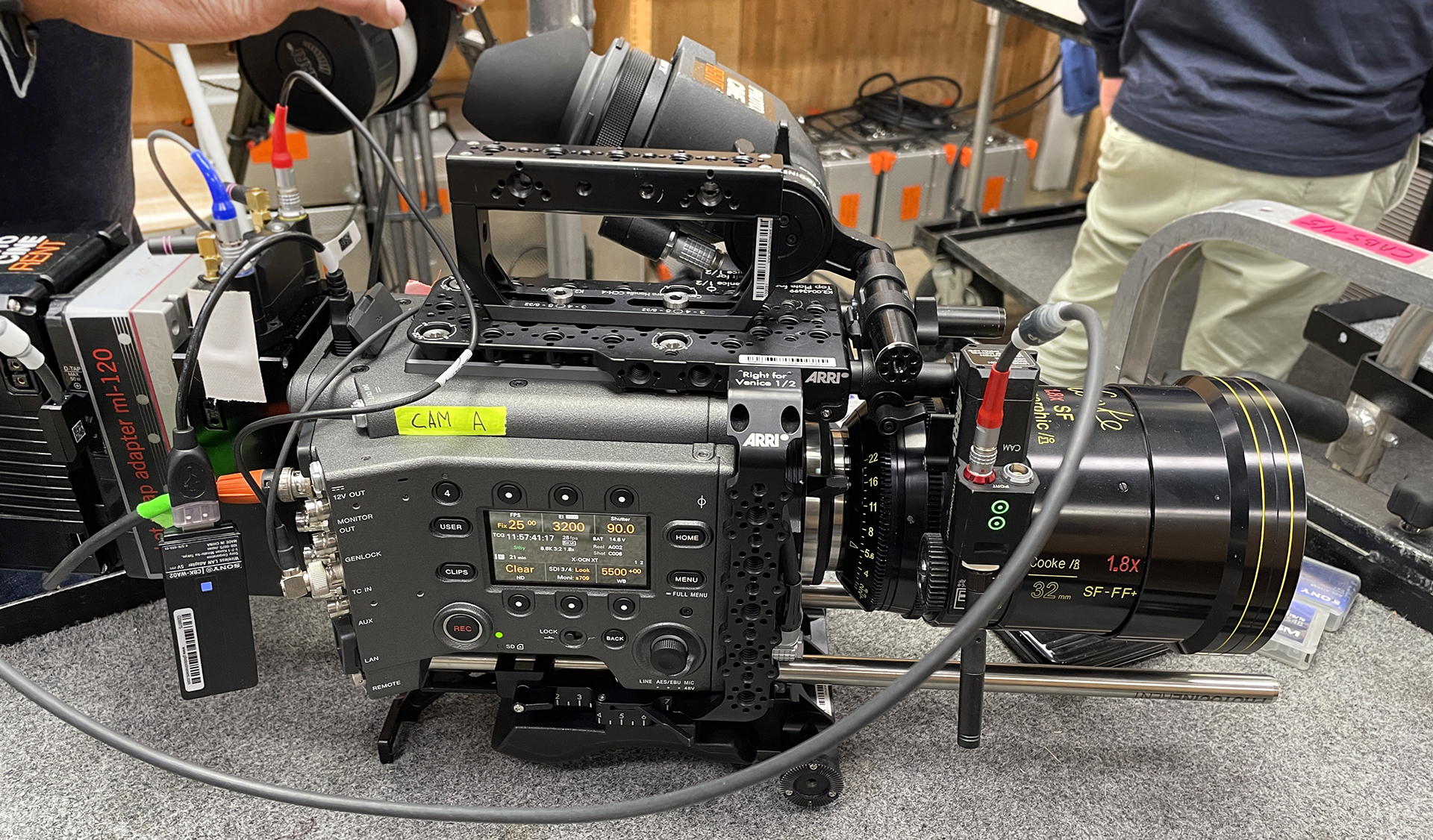 We decided to switch to Alexa Mini LF (4.5K recording) with the 32mm Cooke SF+FF, then the 50mm Zeiss Supreme Prime. Data is still transmitted via the Lemo cable to the Lockit+ box.